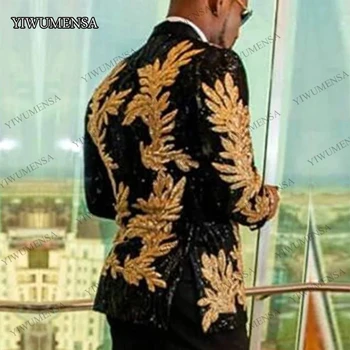 Black Business Men Suits With Embroidery Beaded Two Pieces Shawl Lapel Designer Wedding Tuxedos Gold Groomsman